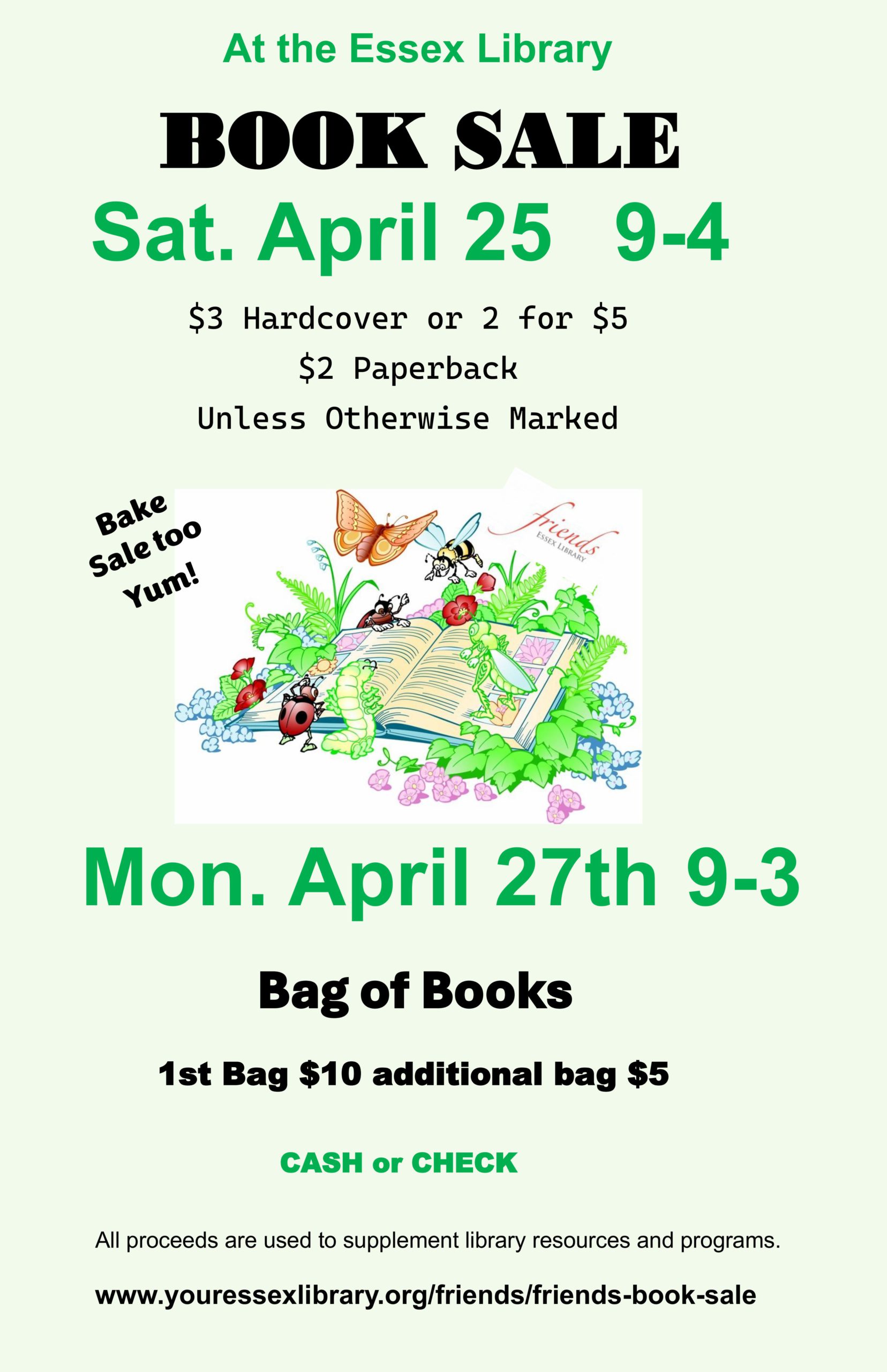 As always, thank you for your donations in very good condition, which allow us to resell and support the services and programs of the Essex Library.